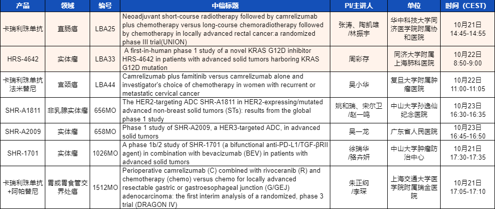 ESMO 2023 DB真人医药产品相关研究一览